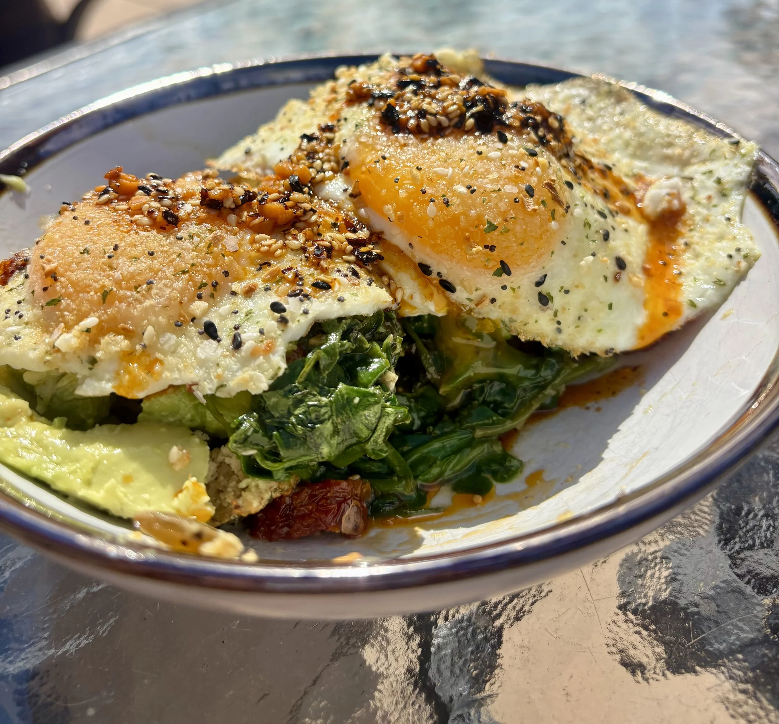 Finished with two jammy eggs and a sprinkle of garlic salt and pepper, it delivers excellent protein, healthy fats, and fiber to keep you energized for hours.